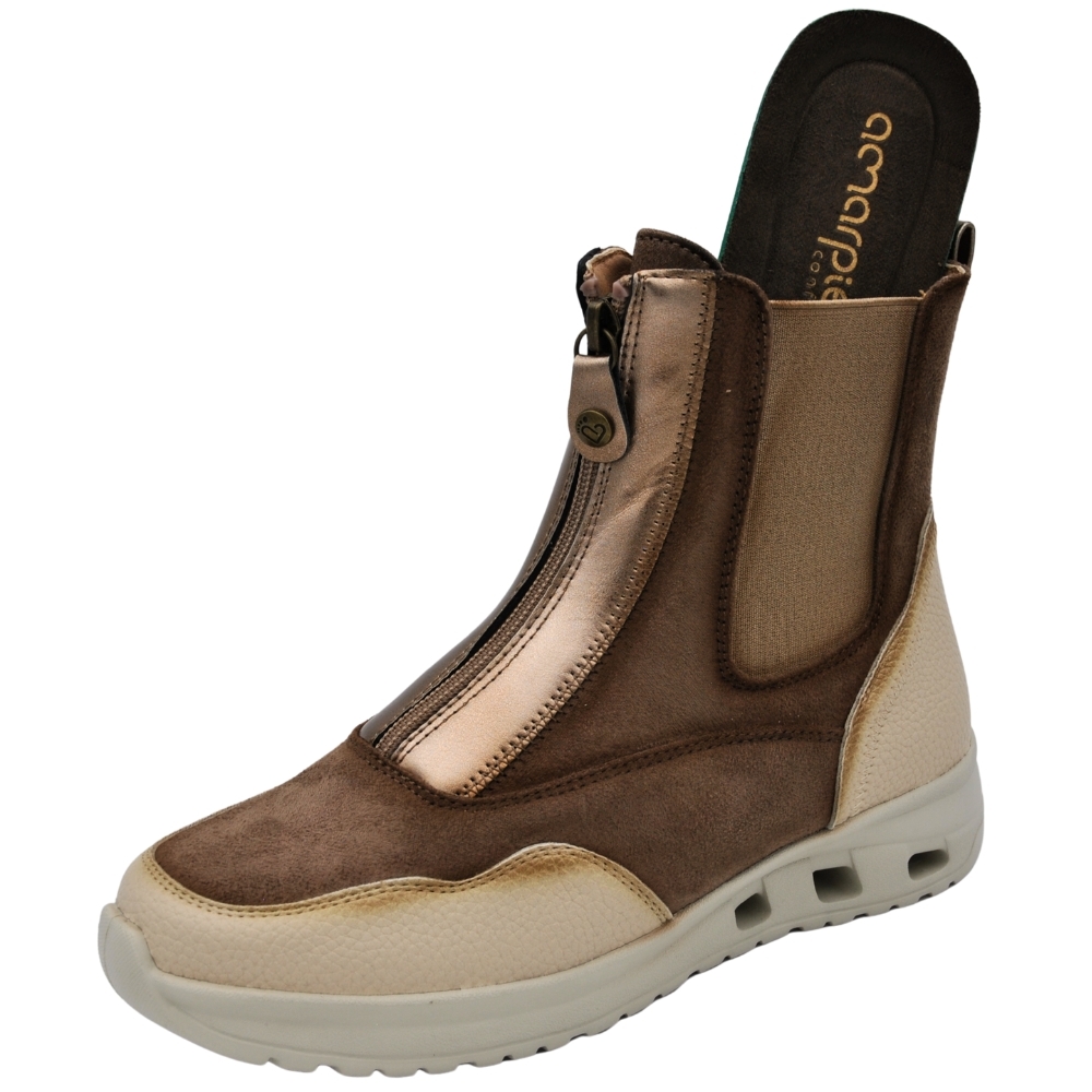 Los botines AMD 29411 CREMA de Amarpies se caracterizan por su ergonomía, ligereza, flexibilidad, y por adaptarse en todo momento a la forma natural del pie proporcionando descanso y libertad de movimiento. Se fabrican con horma amplia que ofrece un calce ancho que no aprisiona.
