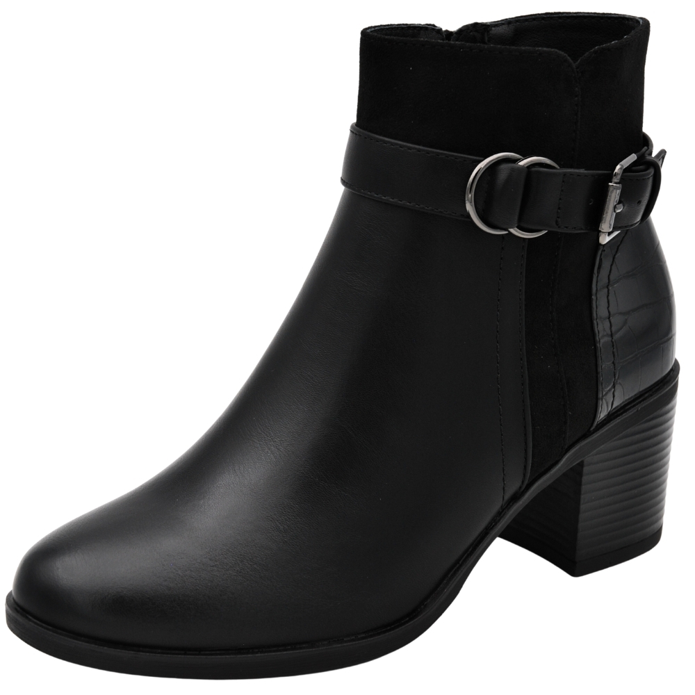 Descubre la elegancia y comodidad de estos Botines para mujer con tacón ideales para las mujeres que aman la comodidad sin renunciar al estilo. Su distintivo color negro aporta un toque sofisticado y versátil para combinarse con gran variedad de outfits. Cuentan con cremallera para facilitar su uso, y su perspicaz diseño de polipiel y textil en el exterior asegura la durabilidad, mientras que su interior textil garantiza confort en cada paso. Destaca su su tacón de 3-5 cm, perfecto para estilizar tu figura sin sacrificar la comodidad. Además, su suela sintética proporciona un mayor agarre, evitando deslizamientos. Sus características representan la perfecta unión de moda y funcionalidad, haciéndolos imprescindibles en tu guardarropa. Son el epítome del estilo Casual y Cómodo con la calidad que nos caracteriza en AMARPIES.
