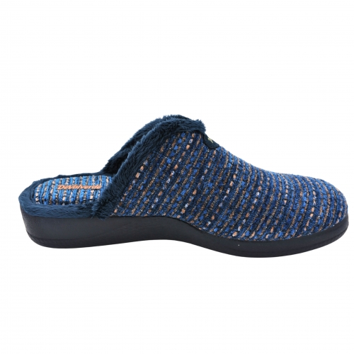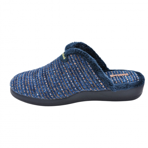 Zapatilla de estar por casa de mujer en color marino de la marca Devalverde. Plantilla acolchada para mayor comodidad. Planta de goma antideslizante. Termoestables y antibacterianas. Fabricadas en España.