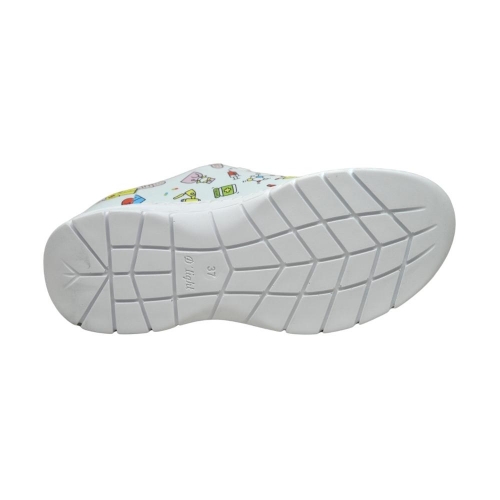 Suela de material compuesto EVA XL EXTRALIGHT®, ultra ligera, confortable, flexible y antideslizante, con diseño de pastillas planas, cantos vivos y acanaladuras amplias para facilitar la evacuación de líquidos. Apto para lavado en lavadora hasta 40º.