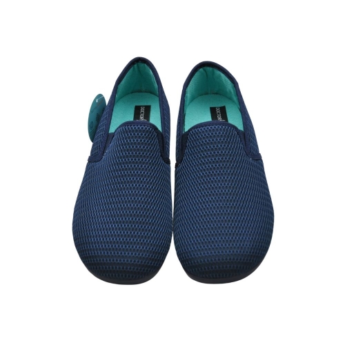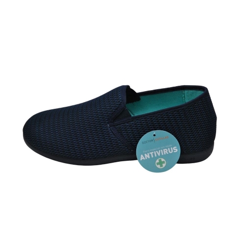 Zapatillas para hombre, de la marca Doctor Cutillas 1415 azul marino, hecho en textil de rejilla, con forro interior en textil, forro especial con tejido antivirus, cierre sin cordones y suela de goma. Con plantilla extraible sustituible por plantilla especializada.