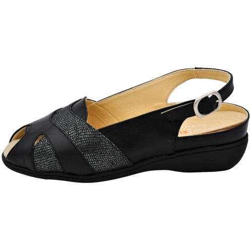 Elaborada en piel y lycra, para una adaptabilidad perfecta. Plantilla extraíble acolchada. Cuña de 2 cm. Ancho especial. Especialmente indicado para pies delicados, con juanetes, dedos en garra, artritis, etc.