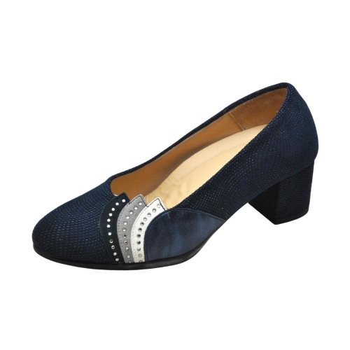 Zapato de corte salón con tacón medio para mujer, muy cómodo para pies delicados, ancho especial con plantilla extraible hecho en piel.