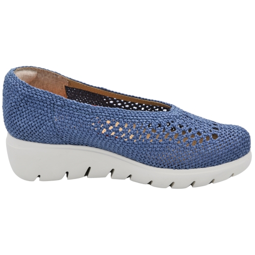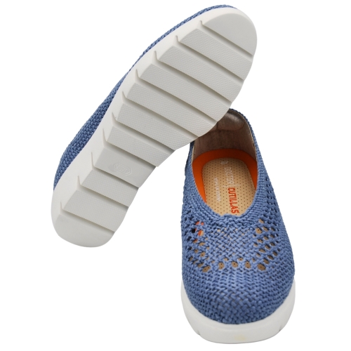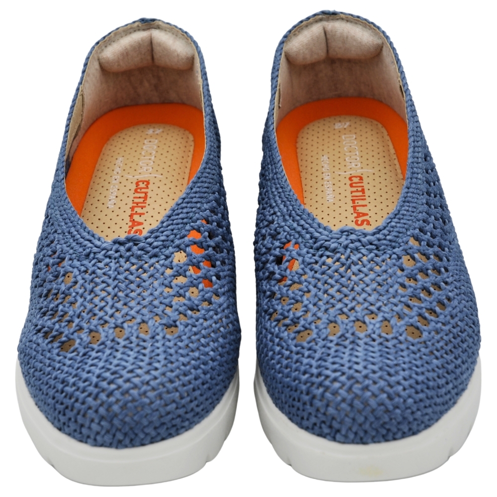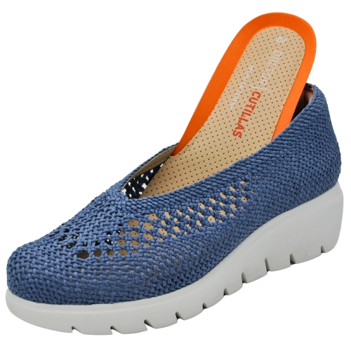 Bailarinas de tela de la marca Doctor Cutillas clásicas para mujer, manoletina con diseño cerrado, calado de rejilla. Tiene la suela blanca de goma. Cuña de 5 centímetros. Plantilla extraible. Fabricado en España.