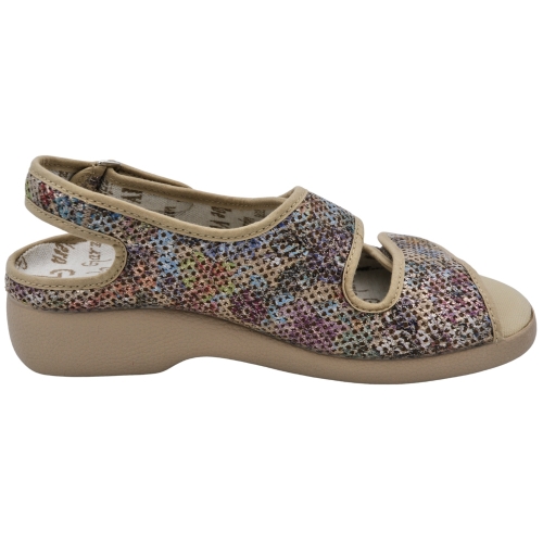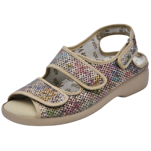 Zapatilla de ancho especial con un tejido  blando y elástico, ideal para pies anchos y con dedos curvados. Plantilla extraíble con posibilidad de colocar plantilla podológica. El tejido interno es muy blando para un mayor bienestar.