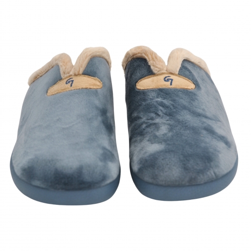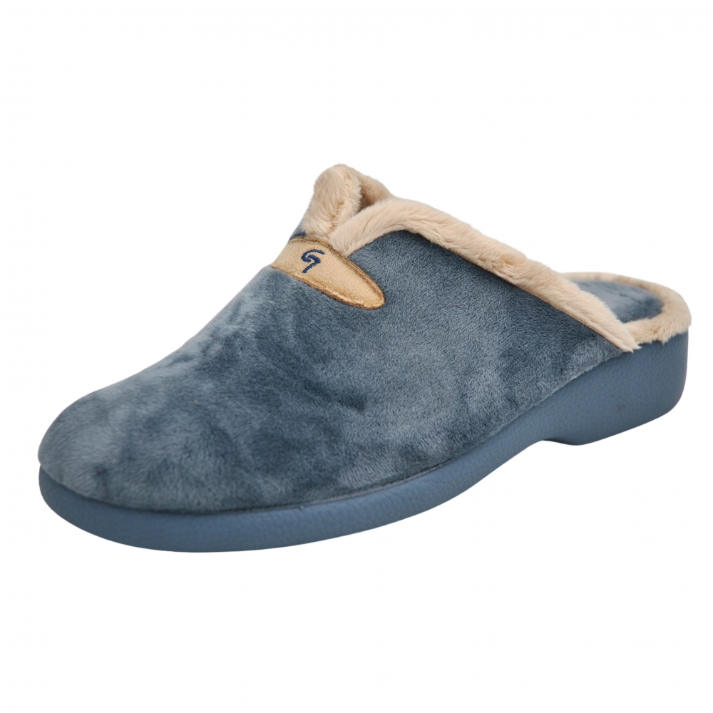 Zapatillas de casa para mujer Garzón 3723.247 en color indigo. Características: zapatilla abierta, altura de piso 3 cm, zapatillas de cómodas, suela de goma, exterior textil suave con plantilla acolchada.