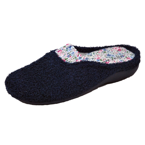 Zapatilla de andar por casa en rizo exterior y tejido suave en interior. Sistema de plantilla extraíble Walk Flex que ofrece una excelente amortiguación y la posibilidad de colocar plantillas ortopédicas. Suela de goma antideslizante y muy flexible.