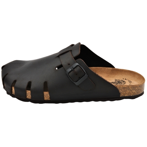 Sandalias de piel para hombres de Interbios, con un diseño inspirado en los zuecos, presentan una opción elegante y práctica para el vestuario de verano. Estas sandalias, hechas en España con materiales de piel de primera calidad, combinan la facilidad de uso de un calzado sin cierres con la comodidad y el estilo de una puntera cerrada y una hebilla decorativa al frente para ajustes menores.