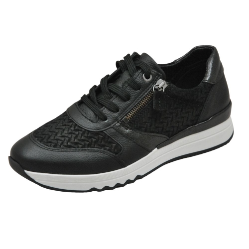 Doble apertura de cordón y cremallera, con una atractiva combinación en piel y fantasía.