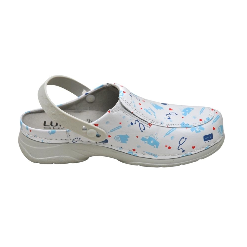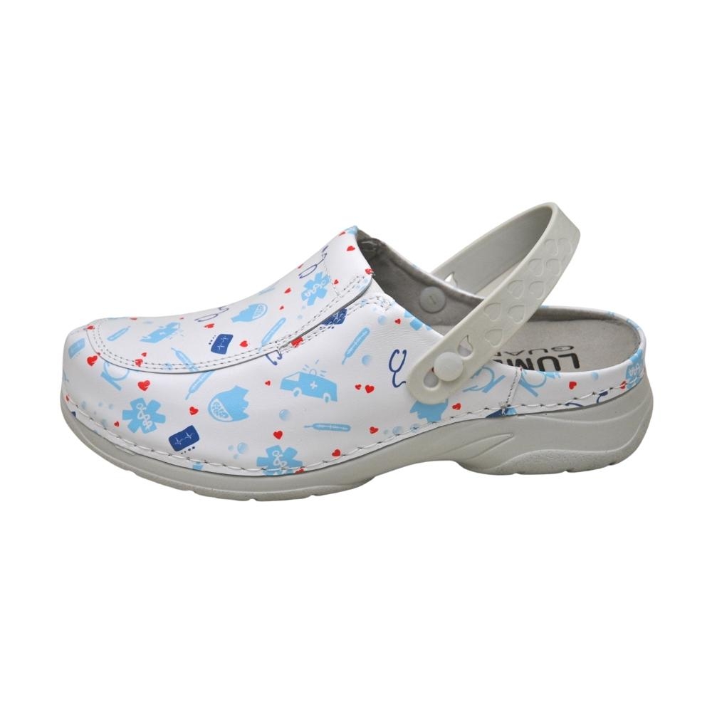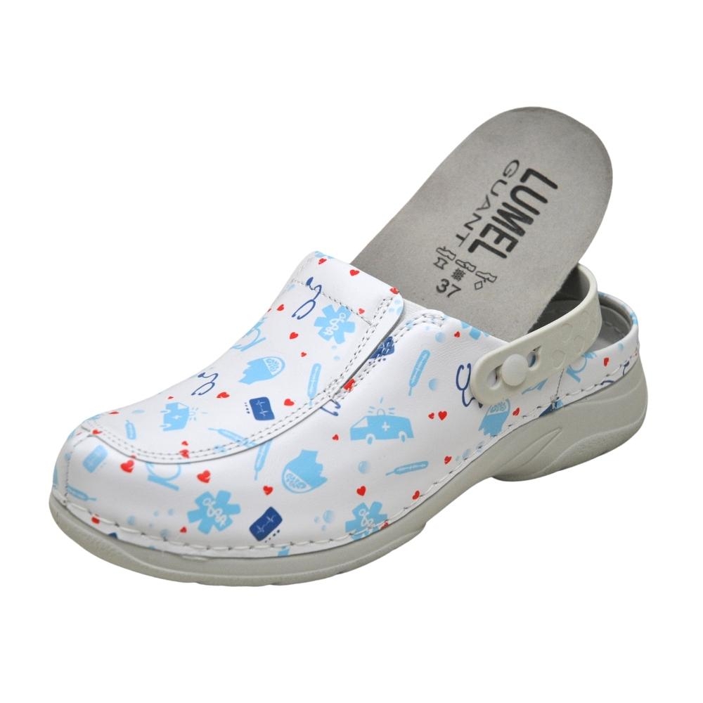 El CAMILA 07 es un Zueco sanitario De la marca LUMEL Guant, que cuenta con una plantilla extraíble, sustituible por una plantilla ortopédica personal.