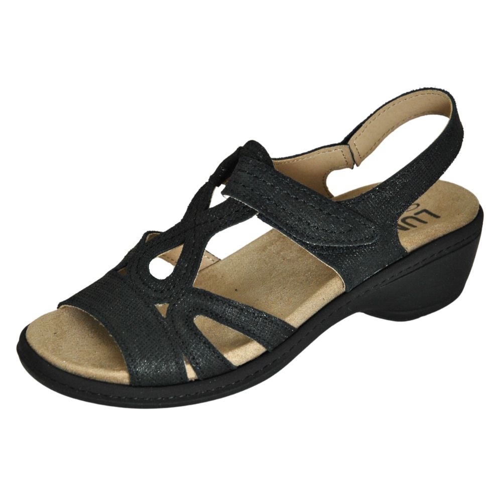Sandalia para mujer. Empeine con adorno en 8, lleva dos velcros en la parte superior para facilitar el calce y ampliar la anchura.