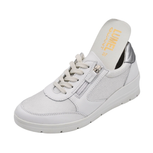 LUMEL en su búsqueda del zapato más cómodo para los pies más dificultosos y delicados, ha creado este actual diseño de sneaker, deportivo urbano, con pala combinada en ante y fantasía elástica, que se adapta a pies con juanetes, dedos de martillo y todo tipo de deformaciones, por sus materiales y estructura muy recomendables para pies diabéticos. Su apertura de cordón y cremallera permite regular la anchura de empeine y un fácil calce
