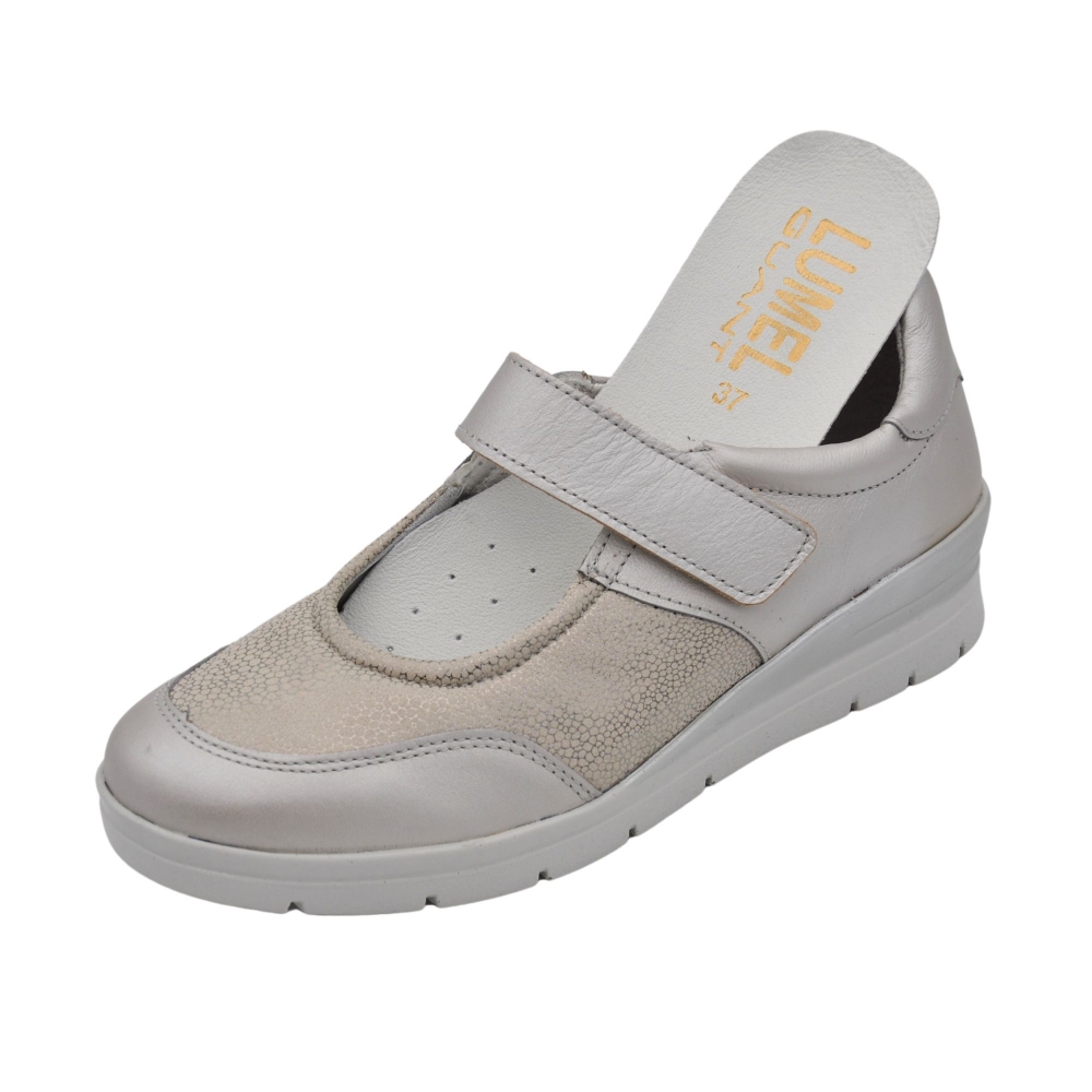 Merceditas con plantilla extraíble de la marca Lumel. Velcro en el empeine para un mejor ajuste.