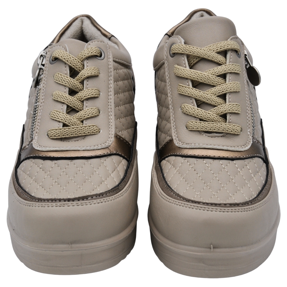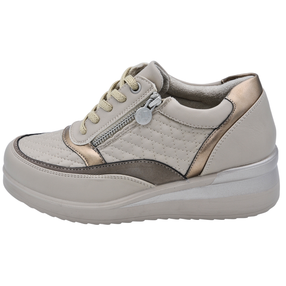 Deportivas para mujer de Nylon y detalles en PU Leather acolchado. Interior en tejido suave y cálido con plantilla extraíble memory foam, para una pisada más cómoda. Detalle de cremallera lateral que facilita su puesta. Suela de goma flexible y ligera con cuña de unos 4,5cm de altura.