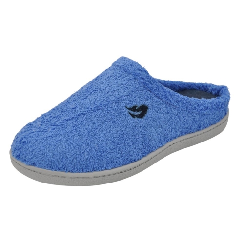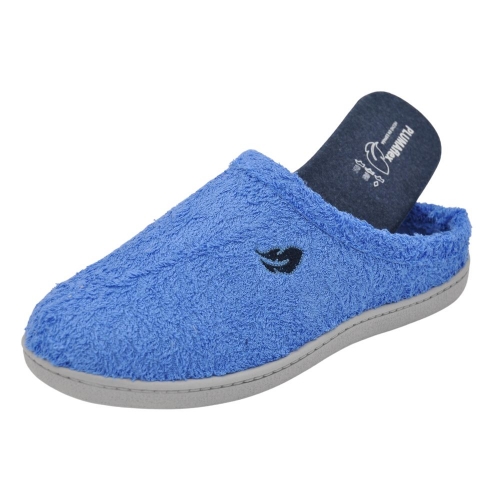 Zapatillas de casa modelo R12314 en color Jeans. Fabricado en algodón con plantilla y forro extraíble, la plantilla tiene un tratamiento antibacterias y de eucalipto. Plantilla de memory foam, zapatilla descalza con suela PVC cómoda.