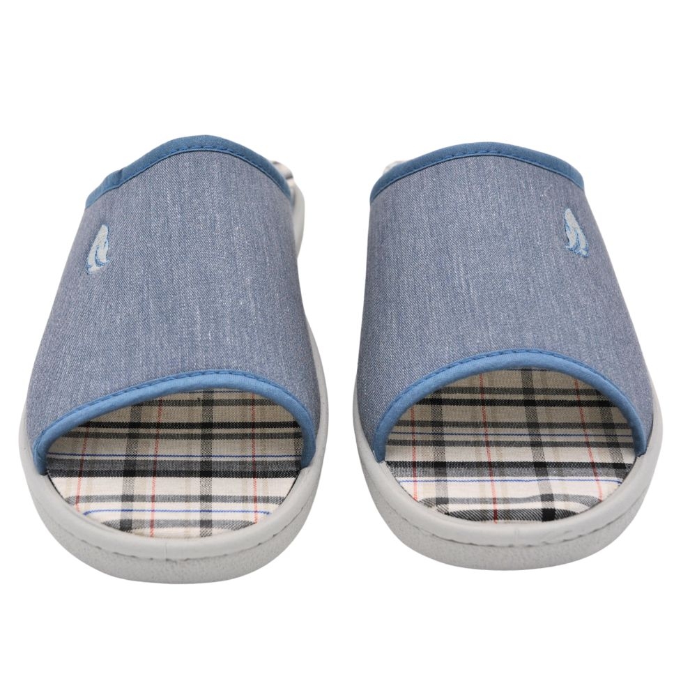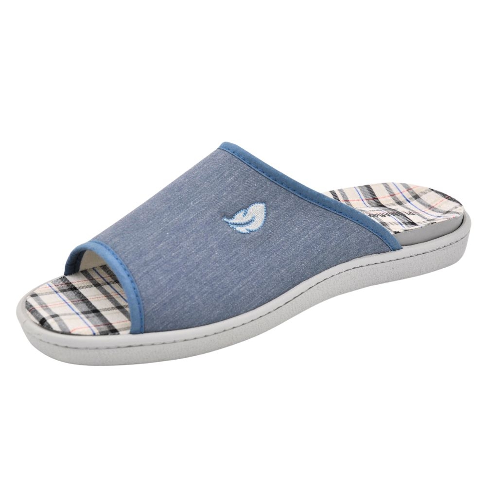 Zapatillas de casa modelo R12451 en color Jeans. Fabricado en algodón con plantilla y forro extraíble, la plantilla tiene un tratamiento antibacterias y de eucalipto. Plantilla de memory foam, zapatilla descalza con suela PVC cómoda.