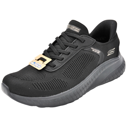 Adéntrate en el estilo deportivo y la comodidad de Skechers Hands Free Slip-Ins®: BOBS Sport™ Squad Chaos - Current Muse. Diseñado con nuestra exclusiva Heel Pillow™, este modelo moderno presenta una parte superior de malla técnica con cordones elásticos y una plantilla con amortiguación Skechers Memory Foam™.