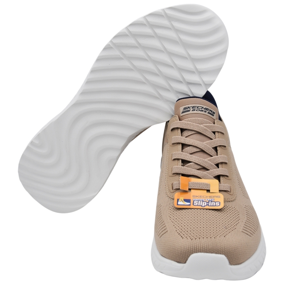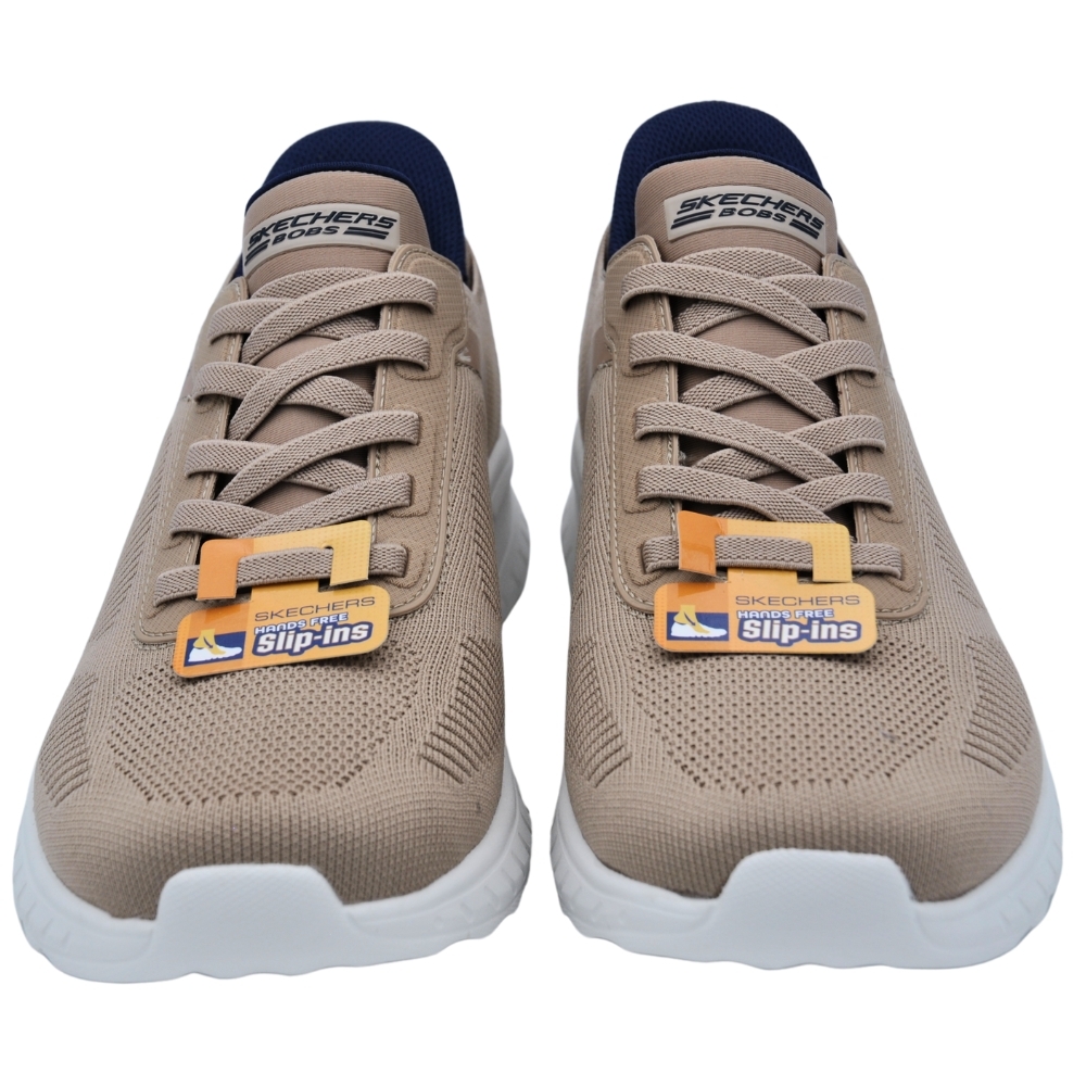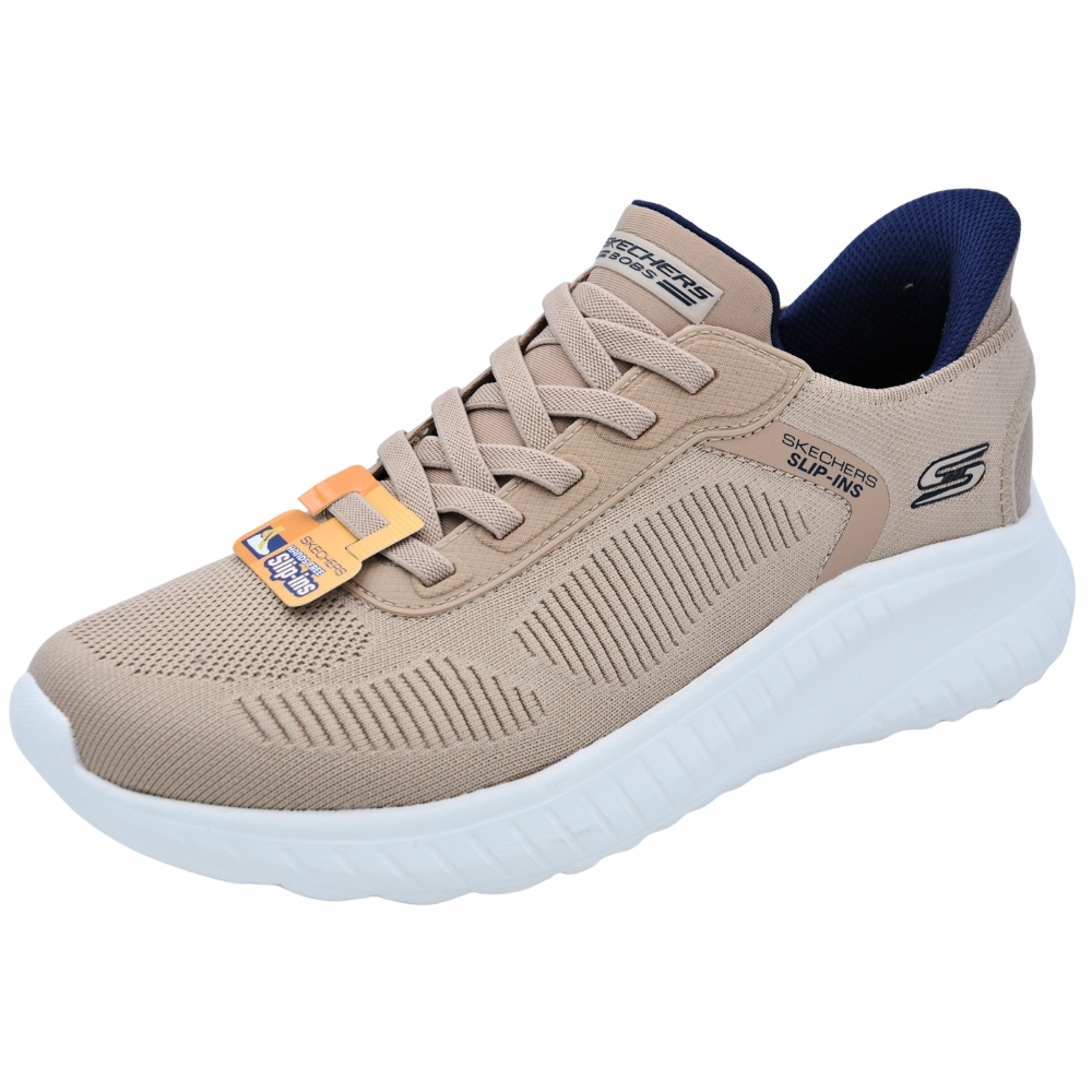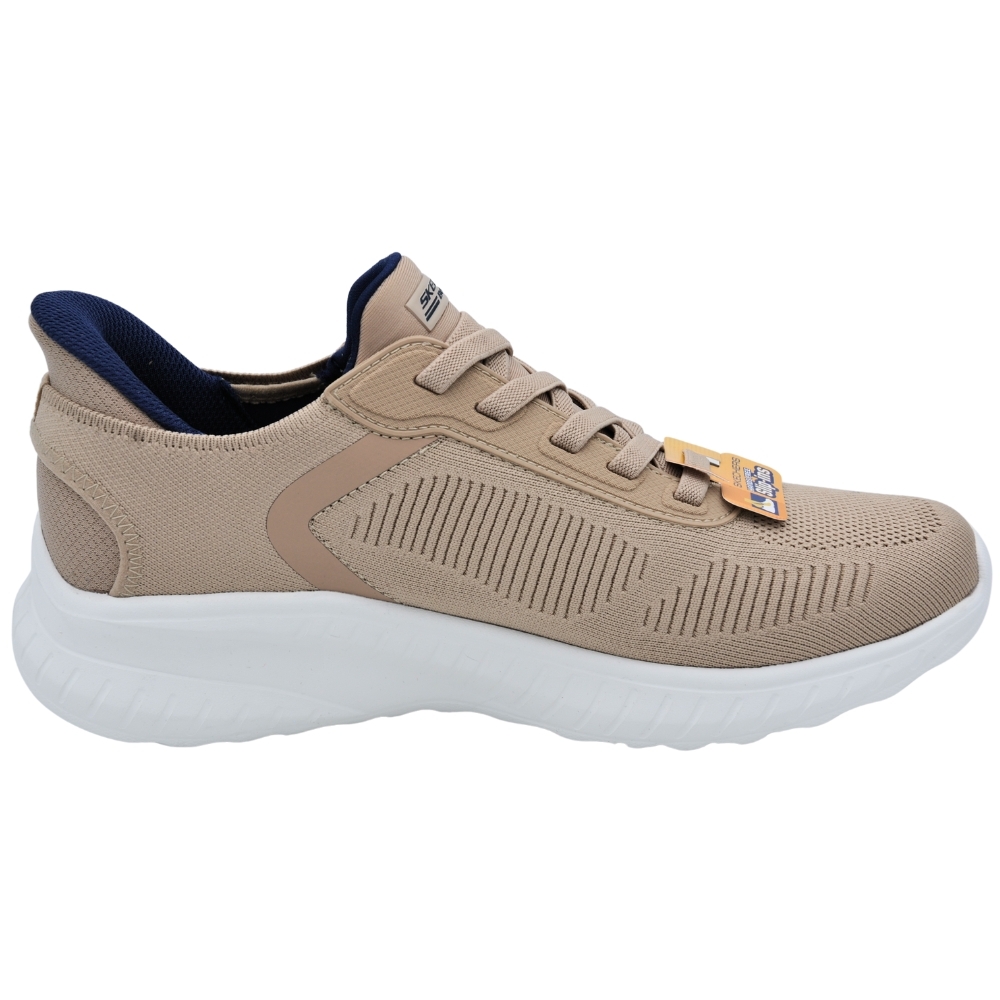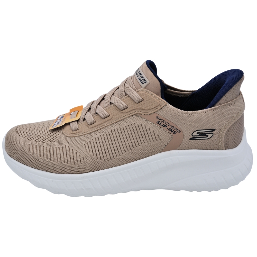 Adéntrate en el estilo deportivo y la comodidad de Skechers Hands Free Slip-ins®: BOBS Sport™ Squad Chaos - Solid Step. Diseñado con nuestra exclusiva Heel Pillow™, este modelo deportivo vegano presenta una parte superior de knit técnico con cordones elásticos y una plantilla con amortiguación Skechers Memory Foam™.