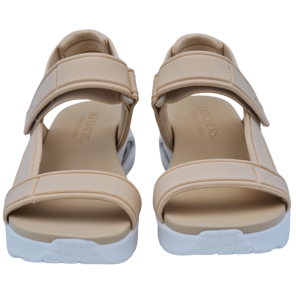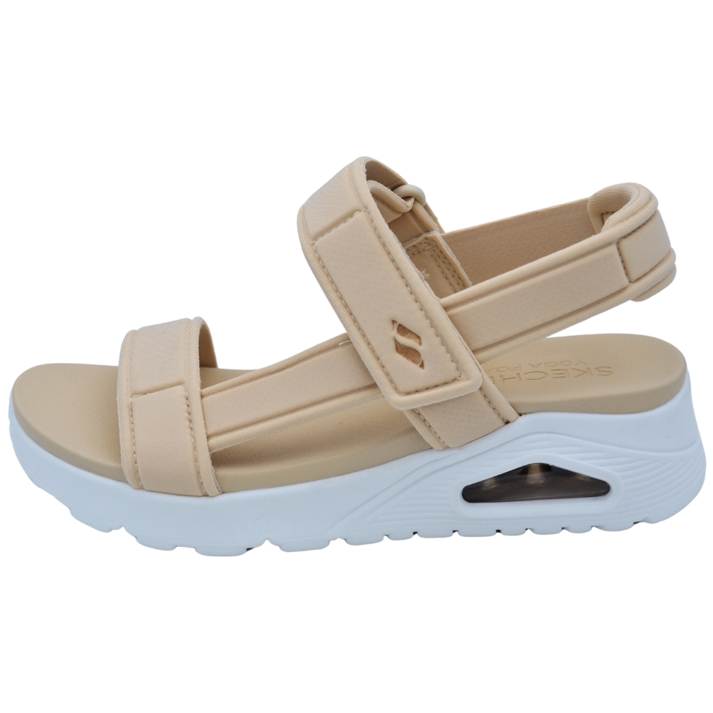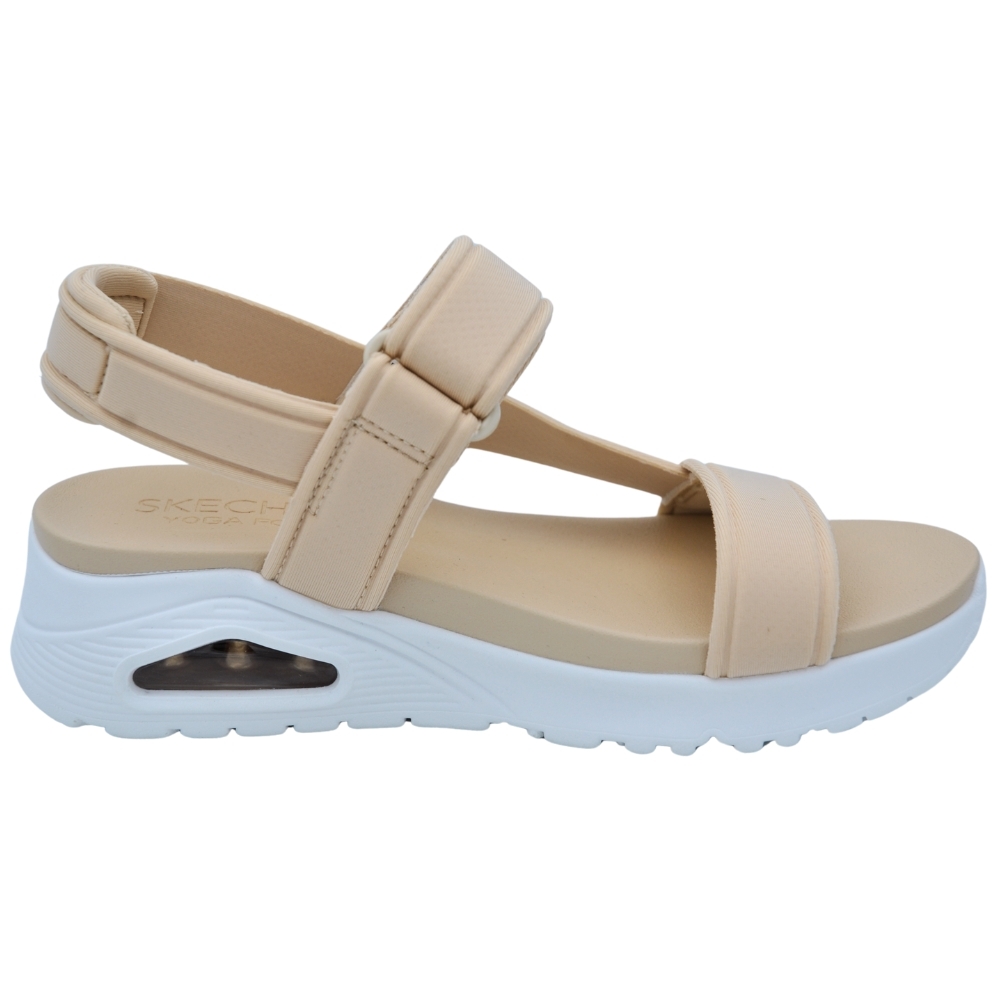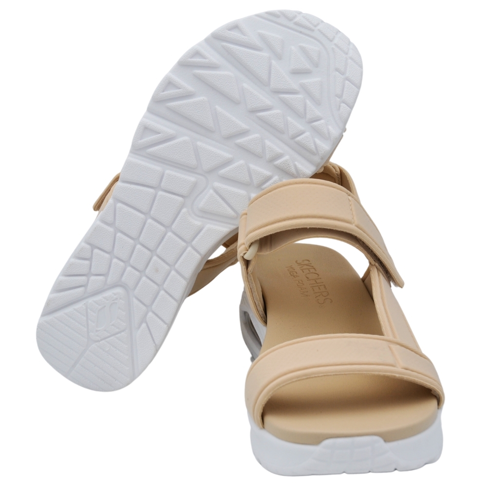 Recibe la estación calidad con estilo gracias a Skechers Uno - Summer Stand2. Estas sandalias veganas con correa en forma de T se inspiran en nuestro emblemático modelo Uno y cuentan con una parte superior sintética de nailon en bajorrelieve con una correa ajustable en el talón. Este modelo también incorpora una plantilla Yoga Foam® con amortiguación y una media suela con cámara de aire visible Skech-Air®.
