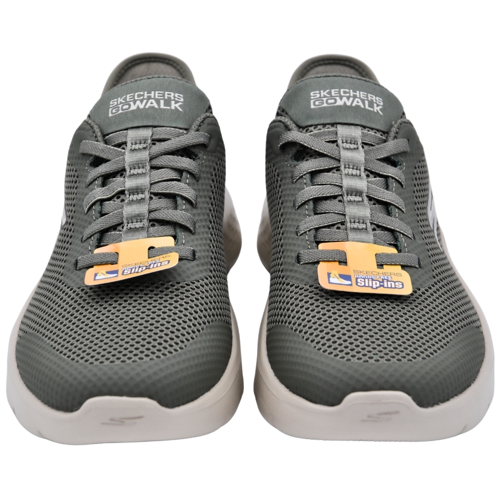 Pásate a la comodidad del senderismo con amortiguación que te ofrecen las Skechers Hands Free Slip-ins® GO WALK® Flex - Grand Entry. Diseñado con nuestra exclusivo Heel Pillow™, este modelo deportivo cuenta con una parte superior de malla y material sintético con cordones elásticos, plantilla Skechers Air-Cooled Memory Foam®, amortiguación ligera Ultra Go® y Flex Pillars™ para un mayor apoyo.