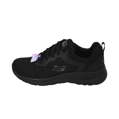 La flexibilidad y la amortiguación que requiere tu entrenamiento con el estilo de SKECHERS Bountiful - Quick Path BBK. Parte superior de suave malla knit y tejido liso sintético en una zapatilla deportiva con cordones, detalles de costuras y plantilla SKECHERS Memory Foam.
