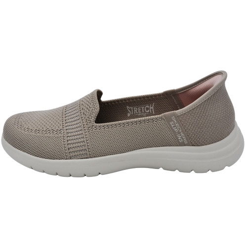 Disfruta de la elegante comodidad de Skechers Hands Free Slip-ins®: On-the-GO® Flex - Camellia. Este modelo sin cordones, diseñado con nuestro sistema exclusivo Heel Pillow™, cuenta con una parte superior de knit técnico Stretch Fit®, una cómoda plantilla Skechers Air-Cooled Memory Foam® y una media suela ligera ULTRA GO® con amortiguación.