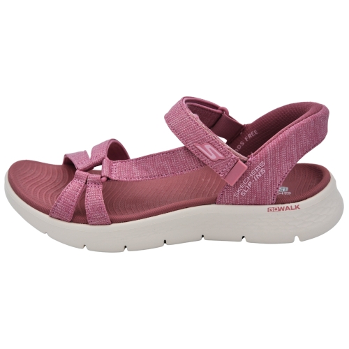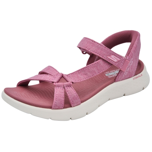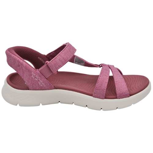 Combina fácilmente tus nuevas sandalias deportivas preferidas Skechers Hands Free Slip-ins®: GO WALK® Flex Sandal - Illuminate. Diseñada con nuestro sistema exclusivo Heel Pillow™, esta sandalia deportiva de tiras cuenta con una parte superior de malla con correa ajustable en el empeine, una plantilla moldeada Goga Mat®, la amortiguación ligera ULTRA GO® y una pieza trasera en el talón.