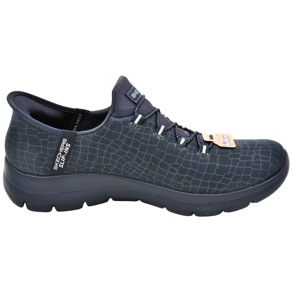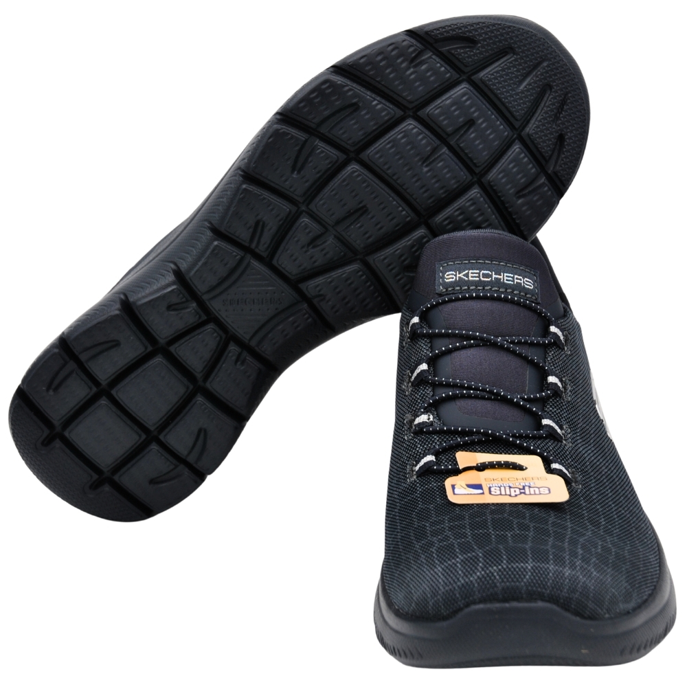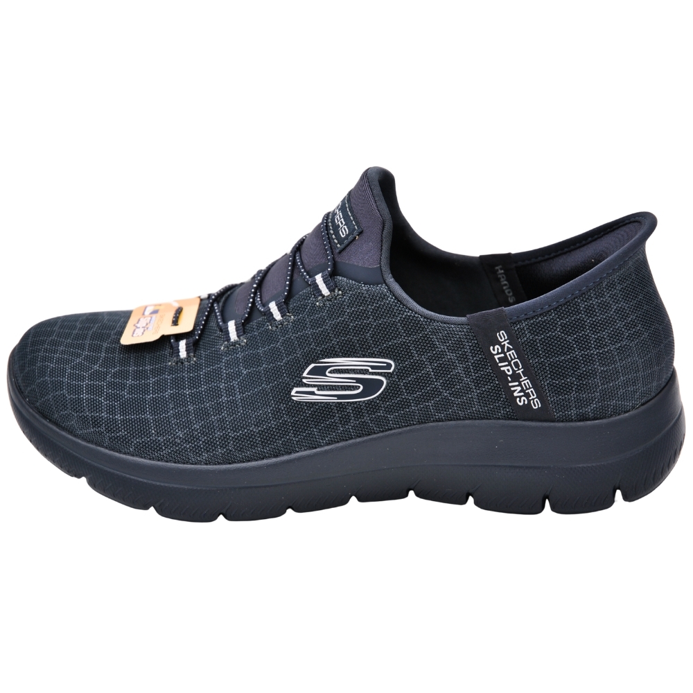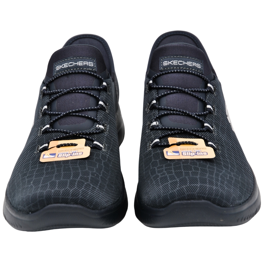Añade un poco de glamour a tu paso con los cómodos y sencillos Skechers Slip-ins®: Summits - Classy Night. Diseñado con nuestro exclusivo Heel Pillow™, este estilo vegano presenta una parte superior de malla brillante con estampado de serpiente con cordones elásticos fijos y una cómoda plantilla acolchada Skechers Air-Cooled Memory Foam®.