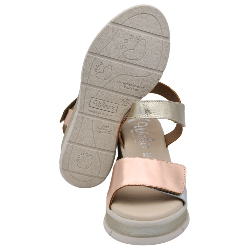 Las sandalias 1992 de Valeria's para mujer en metal combinan a la perfección elegancia y comodidad, ideales para el día a día. Fabricadas en piel auténtica , garantizan durabilidad y una calidad superior. Con una plantilla flexible y amortiguadora, ofrecen un excelente soporte y amortiguación. El cierre frontal de las sandalias se cierra con cierre por contacto para facilitar el ajuste, mientras que la correa del tobillo es elástica y también se cierra con cierre por contacto para mayor comodidad.