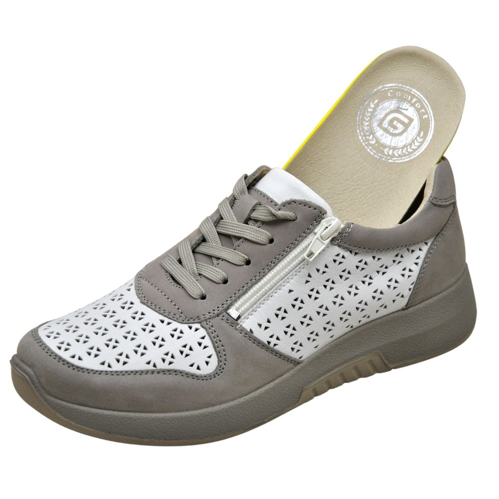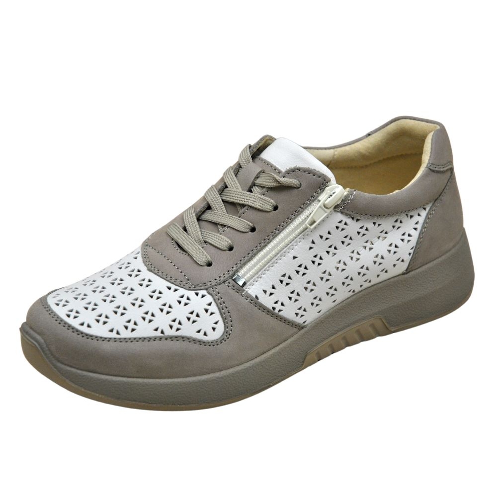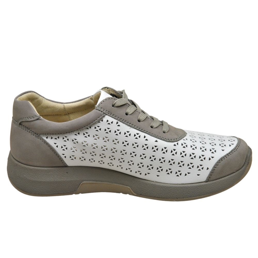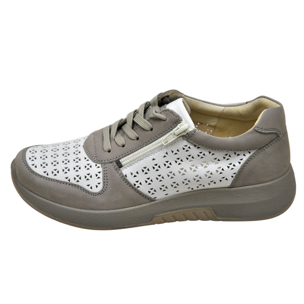 Zapato estilo deportivo con cremallera lateral. Tiene una horma ancha, lo que permite calzar con plantillas ortopédicas hechas a medida. Esta fabricada con unas pieles muy suaves y perforadas que se adaptan al pie perfectamente. La suela, es ligera y antideslizante.
