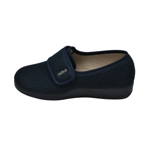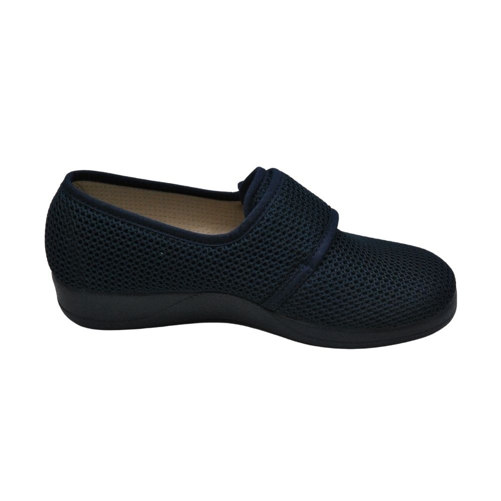 Pantuflas de casa cubiertas de ancho especial, con cuña de 4cm, de la marca DeValverde, cierre de velcro, de rejilla, con forro interior en textil y suela caucho natural (latex). Chinela Ideal para mantener tus pies frescos en verano. Zapatilla de casa para mujer, piso con grabado especial rugoso para evitar posibles deslizamientos. Fabricada con tejidos en microfibras y algodón que permiten una constante ventilación. Relleno de corcho natural para una total absorción de los posibles impactos. Respetuosos con la naturaleza. Utilizando materiales que cuidan al máximo posible el medio ambiente. Hecho en España.