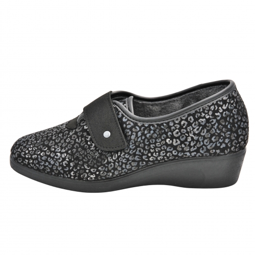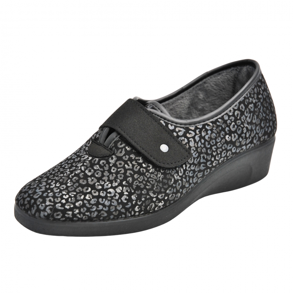 Zapatilla de Devalverde para mujer, clásica con cierre de velcro a un lateral para mayor sujeción, de color marrón y con cuña.
