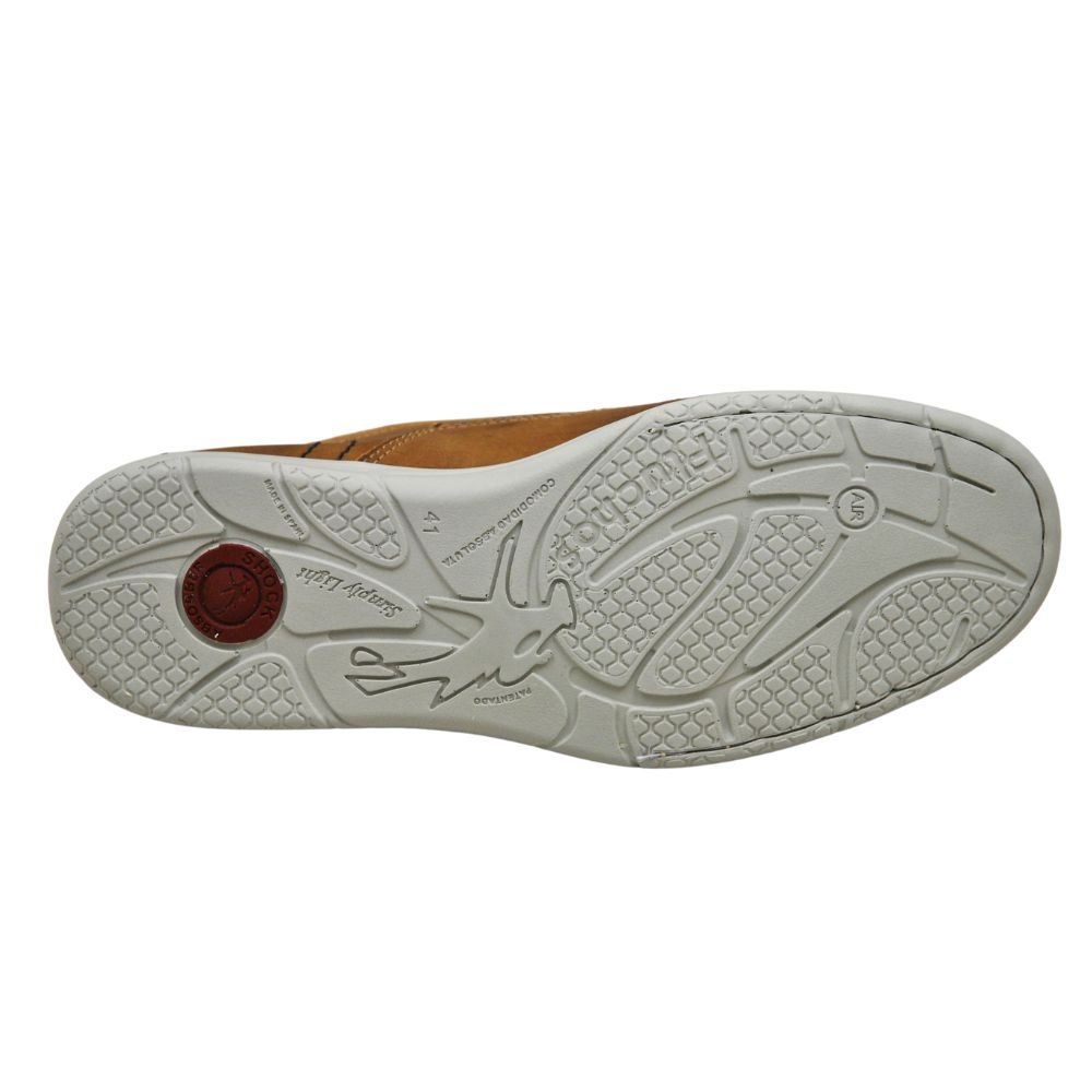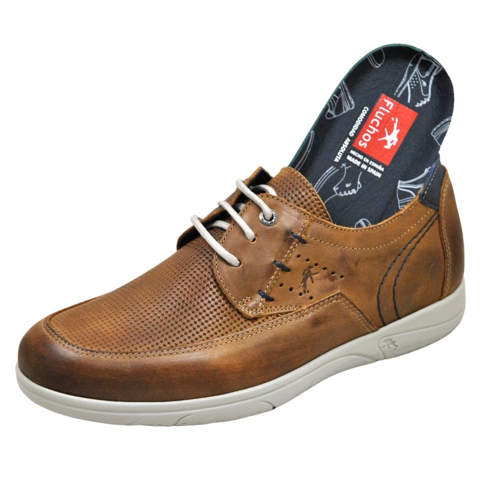 Zapato blucher sport con pala picada. Cierre de cordonera central para un perfecto ajuste al pie. Plantillas extraíbles y acolchadas que amortiguan la pisada y reducen los impactos. Piso de goma ligero antideslizante y flexible. Fabricado en España.