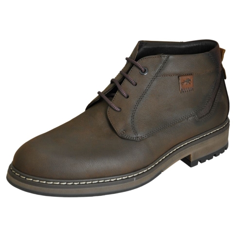 Botín de la marca FLUCHOS, fabricado en España con materiales de primera calidad. Todo de piel de color castaño (café), cierre con cordón para mayor sujeción y adaptación.