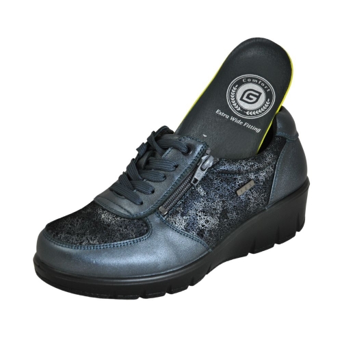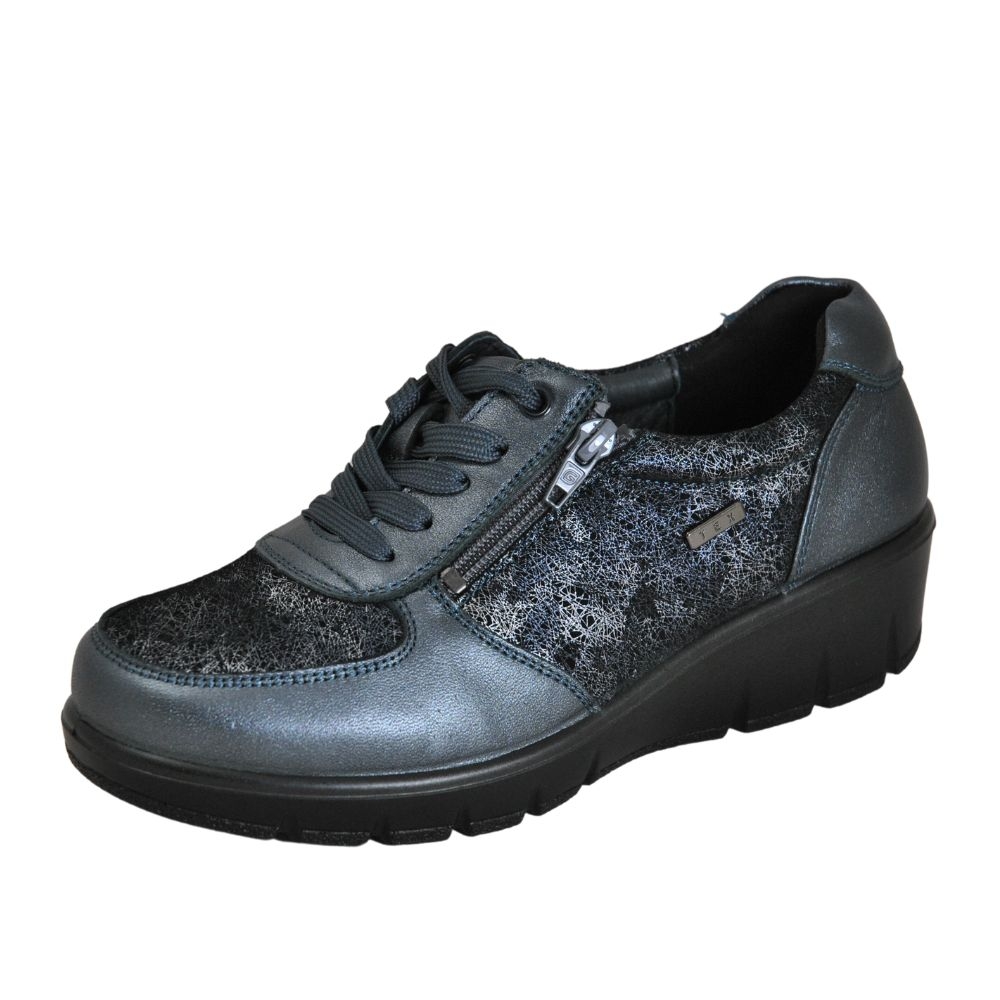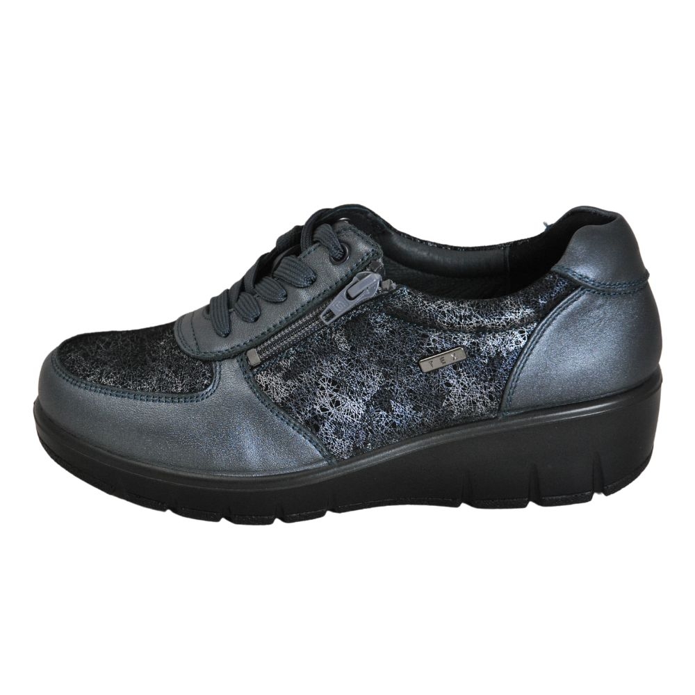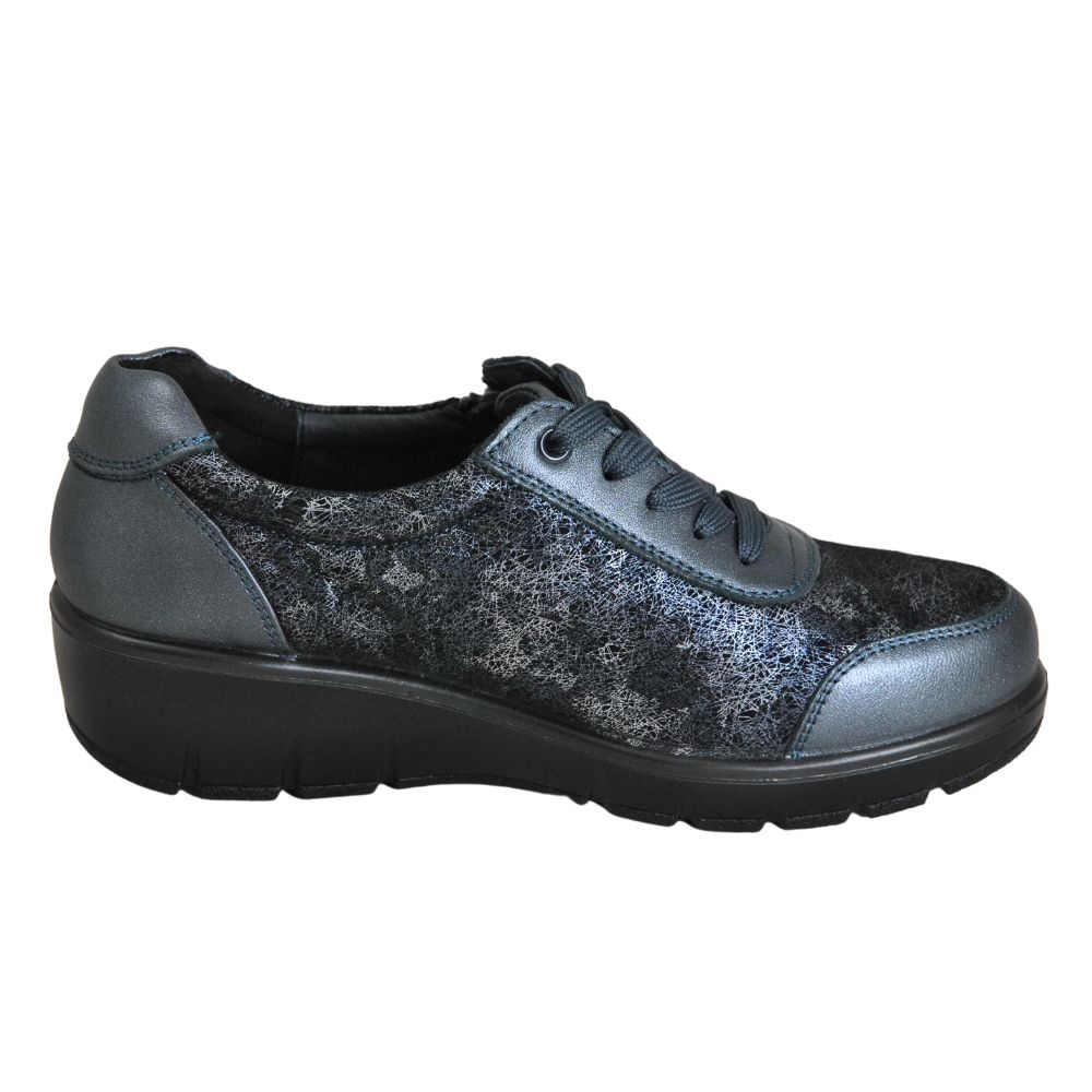 Zapato para pies anchos y delicados con capacidad para plantillas ortopédicas con volumen. Esta fabricado con pieles suaves y flexibles, además la parte interior del juanete esta lisa sin costuras, lo que permite que los materiales se adapten al pie, evitando cualquier presión del zapato al caminar. Este modelo incorpora una membrana impermeable que aísla del frío y la lluvia. La suela es antideslizante, con gran agarre al pavimento, por lo que tenemos base y estabilidad al caminar. También incorpora una cremallera en el lateral, lo que nos evita tener que agacharnos a atarnos los cordones cada vez que nos calzamos el zapato.
