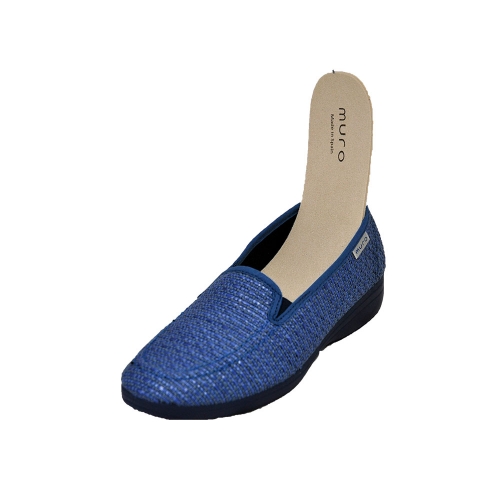 El modelo 805 de la firma española Garrido Muro es un mocasín de verano tipo kiowa hecho en rafia, un material fresco y muy blando. Este modelo se caracteriza por tener el piso de goma un poco más grueso y una pequeña cuña a una altura de 2,5 cm. El piso es muy blando, de hecho se puede utilizar como una zapatilla para estar en casa. La suela es de goma antideslizante. La horma tiene un ancho normal. Con plantilla extraible sustituible por plantilla ortopedica personalizada.