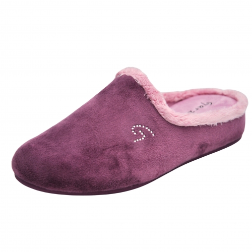 Zapatilla de casa para mujer, muy cómoda para el hogar, en chinela descalza, estilo zueco, con la puntera cerrada, en tejido suatex, color mora malva.