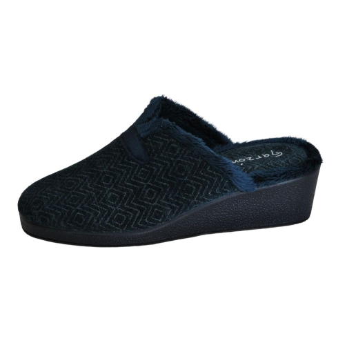 Zapatilla de casa para mujer de Garzón. Elegante modelo con interior cálido. Modelo alto con cuña para una mayor comodidad puesto que no tiene el piso plano. Suela de goma antideslizante. Fabricadas en España.