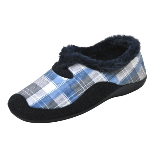 Zapatilla de casa para Mujer de la marca Garzón. Elegante modelo cerrado con interior cálido. Suela de goma antideslizante. Fabricadas en España. Modelo 7950.562. Color Marino