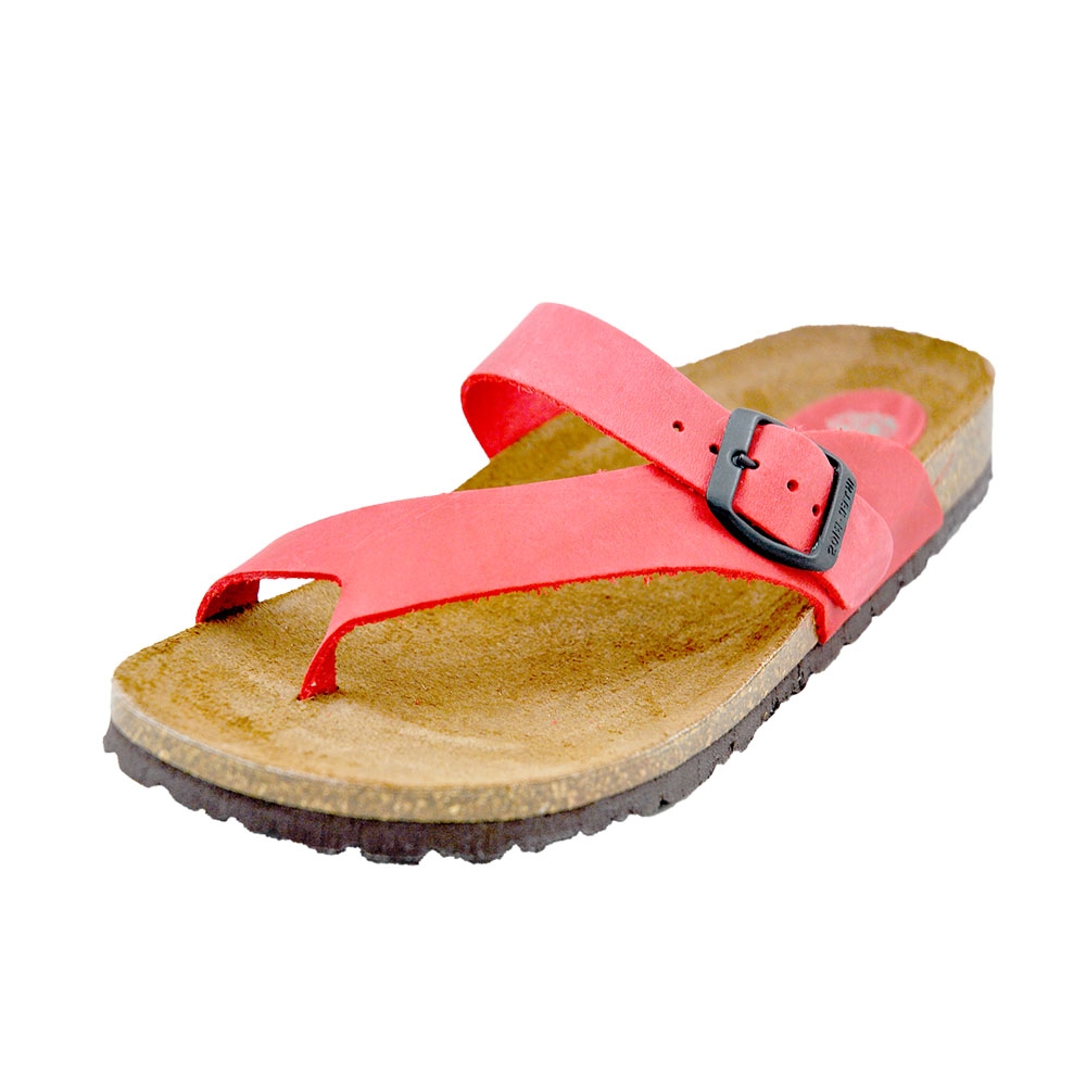 INTER BIOS modelo 7119 con corte de bio anatómico en materiales de pieles naturales y suaves en color Rojo, Fabricadas  con hebilla metálica regulable color acero con 2cm de altura.