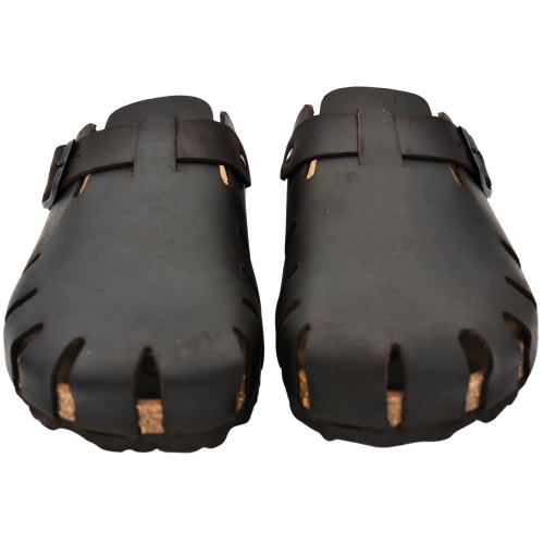 Sandalias de piel para hombres de Interbios, con un diseño inspirado en los zuecos, presentan una opción elegante y práctica para el vestuario de verano. Estas sandalias, hechas en España con materiales de piel de primera calidad, combinan la facilidad de uso de un calzado sin cierres con la comodidad y el estilo de una puntera cerrada y una hebilla decorativa al frente para ajustes menores.