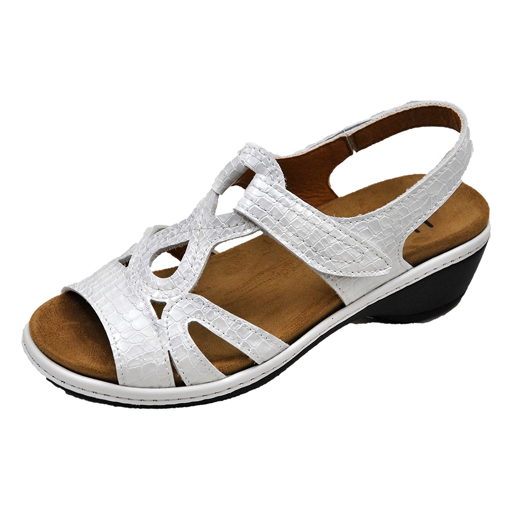Sandalia para mujer. Empeine con adorno en 8, lleva dos velcros en la parte superior para facilitar el calce y ampliar la anchura.