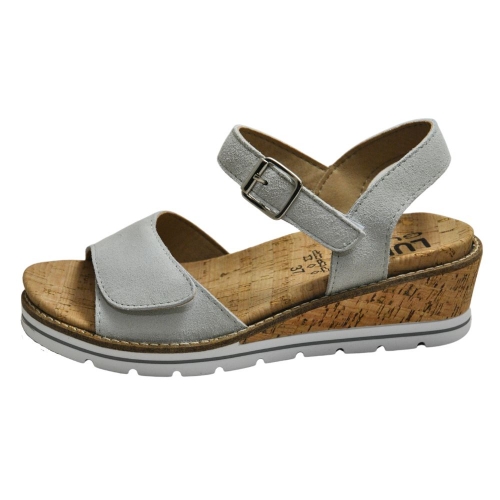 Suela con cuña de material TR y corcho bio reciclable, este tipo de componente tiene una gran absorción del impacto de la pisada y un peso muy ligero