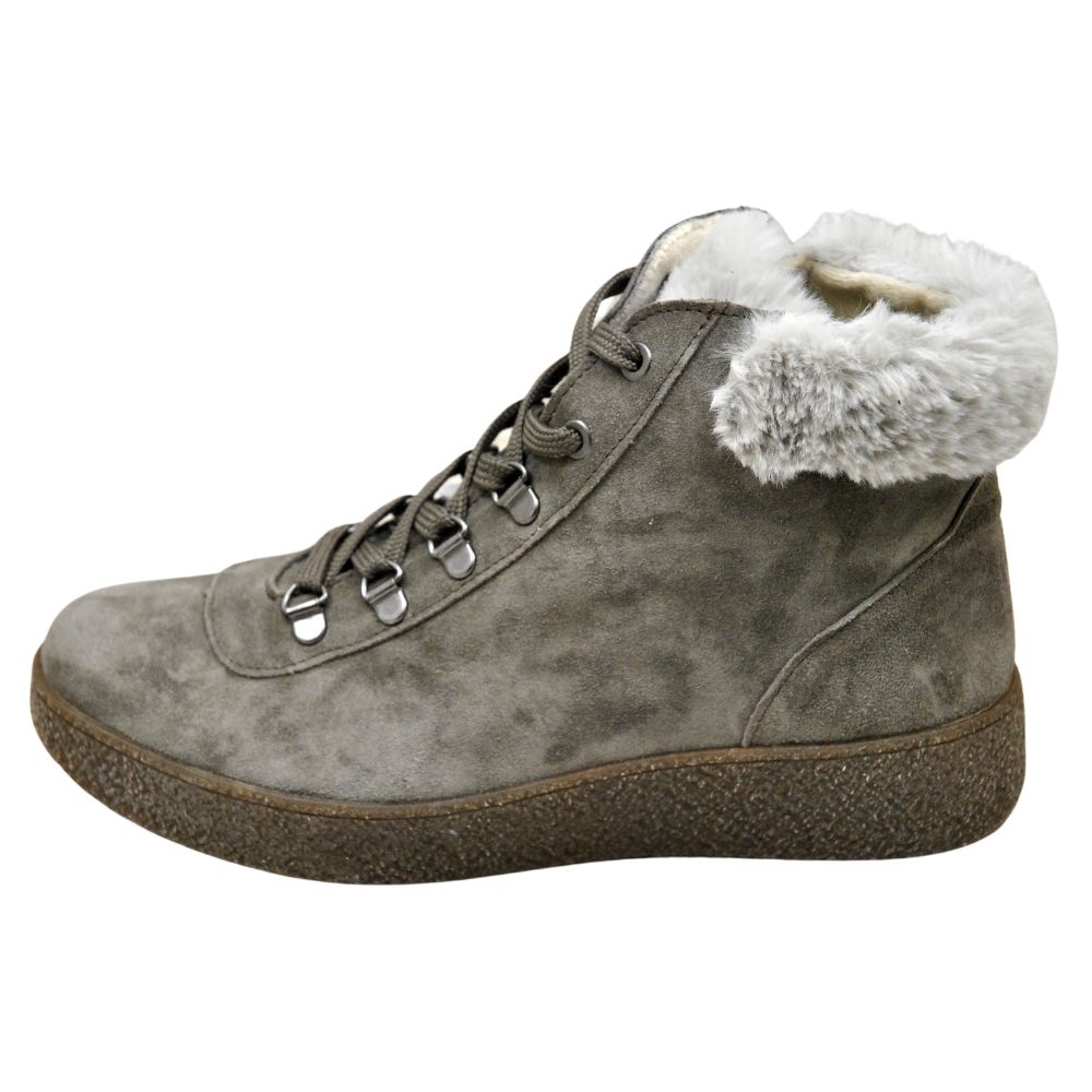 Botín serraje hidrofugado resistente a las salpicaduras de líquido con lengüeta y collarín en piel borreguillo al tono. Forrado internamente por microfibra larga. Apertura cordón y cremallera lateral interior para la máxima facilidad en el calce y la mayor adaptación al ancho del pie.