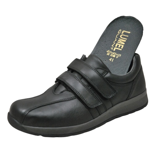 El modelo 805-8503 Jerry 03 BLACK, es un zapato cerrado de piel elástica, con el interior en licra y un cierrre de velcro para mayor comodidad, respetuosos con el pie diabético pies diabéticos, anchos especiales y para su uso laboral. Marca LUMEL GUANT.