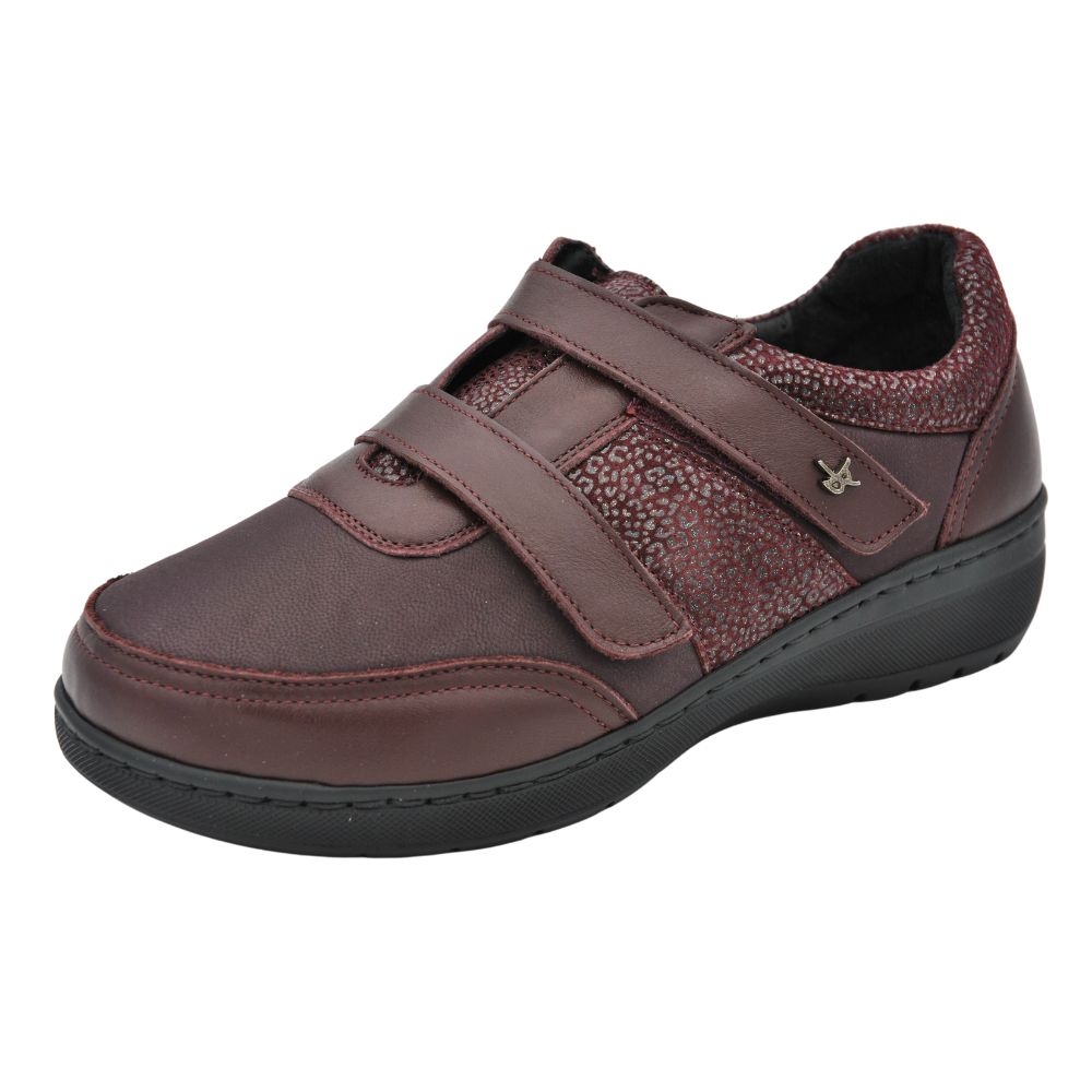 Zapato terapéutico de la marca Lumel Modelo 9095-5256 LIBRA/NAPPA/ELASTICA en Color BURDEOS, con apertura de doble velcro y pala elástica con refuerzo en la puntera.