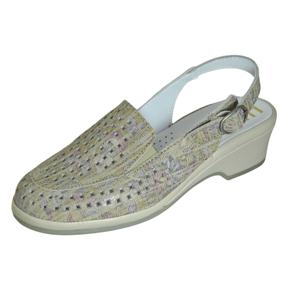 Sandalia con puntera cerrada perforada, planta anatómica, peso ultra light ligeras y muy cómodas, con las mejores pieles en empeine, forros y plantilla. Ancho especial,  cierre con hebilla. Para los pies más especiales y delicados.