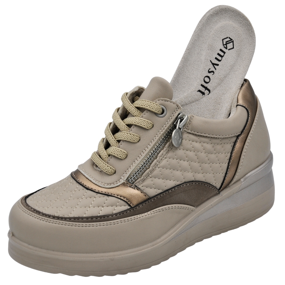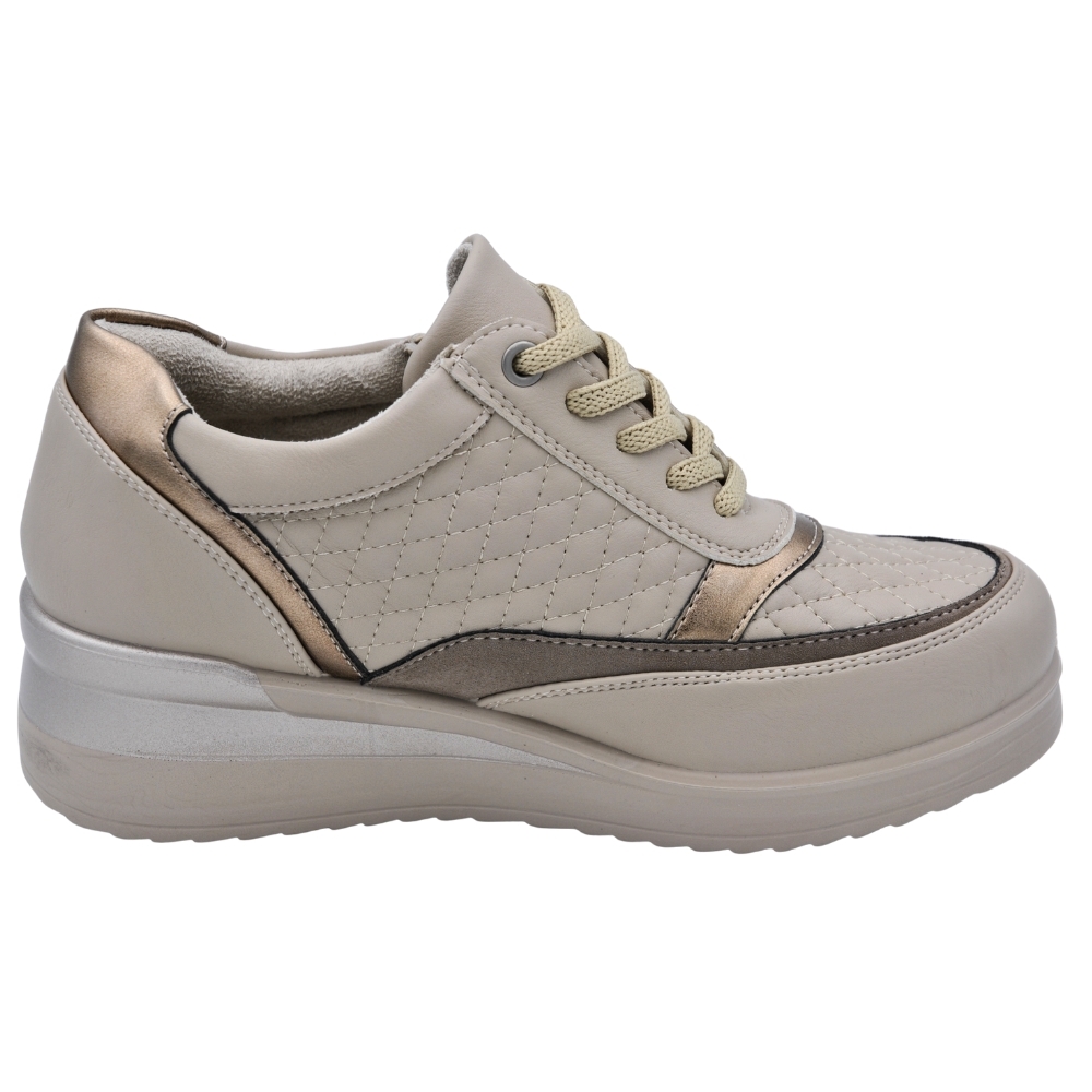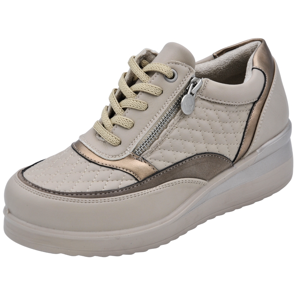 Deportivas para mujer de Nylon y detalles en PU Leather acolchado. Interior en tejido suave y cálido con plantilla extraíble memory foam, para una pisada más cómoda. Detalle de cremallera lateral que facilita su puesta. Suela de goma flexible y ligera con cuña de unos 4,5cm de altura.