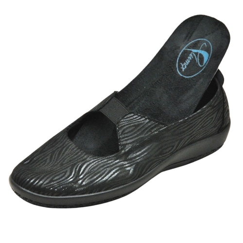 Bailarina en licra para pies especialmente delicados. Se adapta a todo tipo de pies anchos o deformados. Arco plantar anatómico que permite la mayor adaptación a la planta del pie. Piso ultraligero en fabricación inyectada. Con plantilla extraíble sustituible por plantilla ortopédica personalizada.