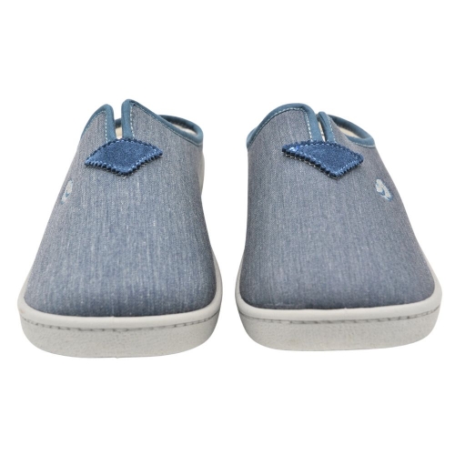 Zapatillas de casa modelo R12353 en color jeans. Fabricado en algodón con plantilla y forro extraíble, la plantilla tiene un tratamiento antibacterias y de eucalipto. Plantilla de memory foam, zapatilla descalza con suela PVC cómoda.